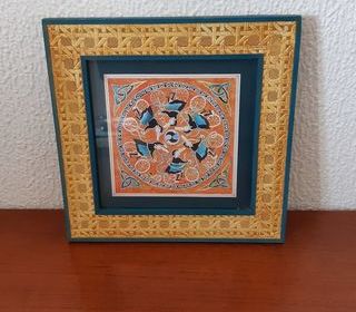 Joli cadre carré aux couleurs gaies. Représentant 6 bretonnes à bicyclette, stylisées. Carré de 24 cm sur 24 cm. Poids hors emballage 400g