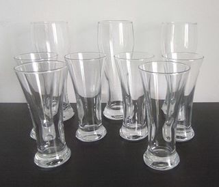 6 verres à pastis ETAT IMPECCABLE Hauteur 15 cm Diamètre orifice 7,5 cm Diamètre base 5,5 cm 3 verres à bière ETAT IMPECCABLE Hauteur 20 cm Diamètre orifice 6,5 cm Diamètr