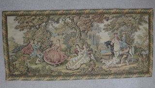 Grande tapisserie murale bordée très décorative. Tissée mains sur véritable métier à tisser Jacquard en parfait état, doublée et prête à poser au mur. Dimension: 170 sur 80