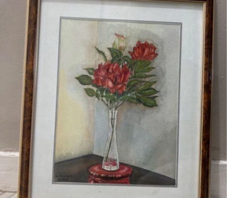 Tres belle aquarelle représentant des pivoines Cadre vendu avec