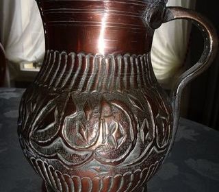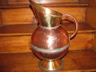 PETIT POT VERSEUR EN CUIVRE AVEC ANSE H 19 CM DIAM OUVERTURE 12 CM DIAM FLANC 16 CM PARFAIT ETAT ENLEVEMENT PAIEMENT ESPECES SI EXPEDITION + PORT 8€