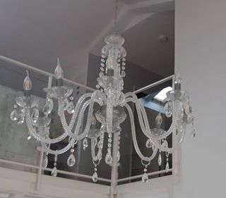 TRES BEAU LUSTRE TOUT EN VERRE 8 BRANCHES, PAMPILLES EN VERRE TBE DIM : Hauteur 70 CMS et Diamètre 90 cms CAUSE DEMENAGEMENT VALEUR LUSTRE SEUL : 700€ (VOIR FACTURE) + 2 APPL