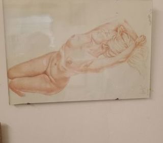 Tableau sanguine un Nu signé Viriglio sous verre dimensions hauteur 27,5cm x largeur 39cm visible sur Nice prendre sur place pas d'envoi