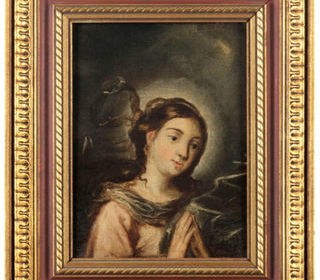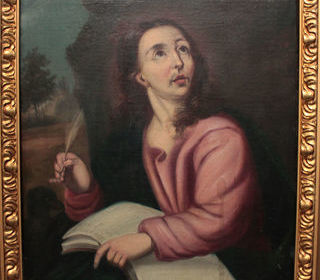 Saint Matthieu École Espagnole 18 ème siècle Splendide peinture religieuse à l'huile sur toile représentant Saint Matthieu, grande finesse dans les détails et le visage Impo