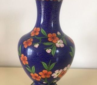 Vase cloisonné de Chine bleu Vase cloisonné bleu de Chine motifs floraux et dorure. Délicatesse des dessins et magnifique choix des couleurs Acheté en Chine, fabrication art