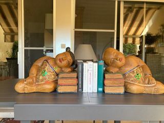 FEMME & HOMME EN BOIS DE TECK ORIGINE THAILANDE ANNEE 1986 PIECE RARE Dimensions de l'ensemble : Longueur 104cm / Hauteur 35cm / Profondeur 24cm Poids total 10,300k3 Retrai
