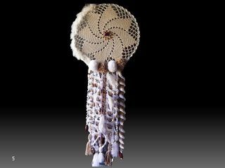 Attrape rêves fait main, ossature en bois, au centre un napperon au crochet fait main, utilisation majoritairement de laine, et accessoirisé Diamètre 34cm longueur 84 cm