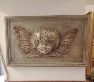 Tableau Ancien bas-relief à tête d'ange d'époque sculpté en pierre en excellent état dimensions hauteur 29,5cm x largeur 47,5cm visible sur Nice prendre sur place pas d'envoi