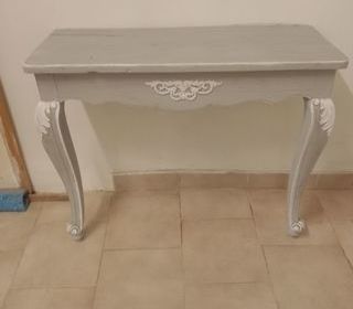 Ancienne Console murale style louis xv patiné gris en chêne massif dimensions hauteur 76,5cm x longueur 93cm x profondeur 35cm visible sur Nice prendre sur place possible d'autres