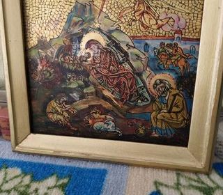 TABLEAU SCENE RELIGIEUSE SOUS VERRE 25X26 BON ETAT PRIX 20€
