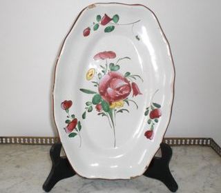 petit plat ovale en faïence XVIIIème siècle Lunéville décor grosses fleurs rouges diamètre 28 cm sur 19 cm prix 140 euros et 6 euros livraison (marchands s'abstenir) tél.