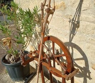 Excellent état pour son âge. Un peu piqué. Voir photos. La quenouille a toujours son ancienne bobine. Largeur33.5 Profondeur 33.5 Hauteur 72cm Quenouille 1m24