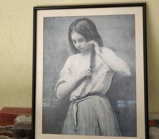 TABLEAU PORTRAIT JEUNE FILLE SOUS VERRE BEL ENCADREMENT 38X47 PRIX 15€