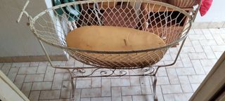 Vends Berceau en fer forgé des années 1920/1930, ou Bercelonnette, Longueur 100 cm, largeur 54, hauteur (sans le support a voilage qui est démontable) 89 cm En excellent état