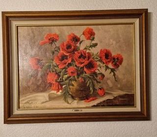 Tableau représentant vase de pavots ou coquelicots. Dimensions 85 cm x 65 cm