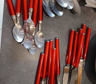 Service complet de 19 pièces SECRET DE GOURMET 6 assiettes plates 27 cms 6 assiettes creuses 20 cms 6 assiettes à dessert 19 cms 1 saladier 23 cms 6 fourchettes 6 couteaux 6 c