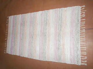 Je vends un tapis artisanal en coton recyclé. 4 couleurs : vert, violet, bleu ciel, ocre. Longueur 1,52 m, largeur 88 cm.