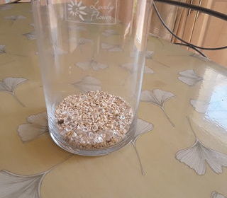 Vase transparent avec caillou au fond