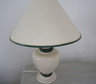 Lampe de salon. Beige et vert. Hauteur 50 cms. Etat neuf.