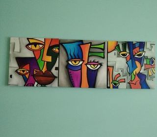 Tableau en toile en trois parties Panneau de bois derrière le tableau Largeur 30 cm et Longueur 30 cm