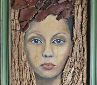 acrylic et materiaux ecorces sur panneau dim 33 x 40cm avec le cadre signe au dos M KELLER livre avec cadre