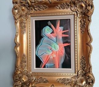 cadre 40x34, représentant une enseigne lumineuse d'un motel américain des années 60.