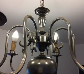 Lustre en étain 6 branches Hauteur 47 cm Diamètre 60 cm Cause déménagement