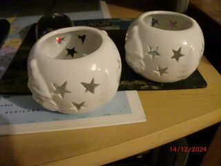2 magnifiques supports pour petite ou grande bougie en céramique blanc décors étoile Ø 9 cm hauteur 6 cm ouverture 5,5 cm 1 euro pièce
