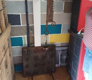 plaque fonte de 60x60 fleur de lys crémaière chaineaux fer avec fleur de lys en laiton