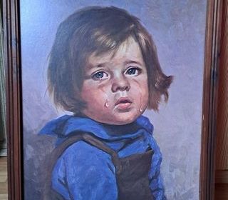 L'enfant qui pleure de Giovanni Bragolin sous cadre en bois de 73 cm x 53 cm 60 euros