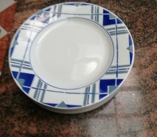 Vends 6 assiettes basque ceranord St amand décor géométrique Made in France en bon état. Année 1950 Couleur bleu et blanc À PRENDRE SUR PLACE et à RÉGLER SUR PLACE Pas de liv