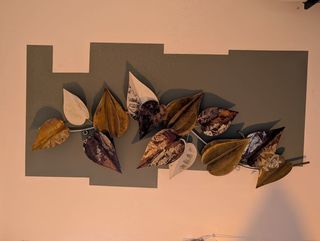 feuillage stylisé métal haut : 110 cm larg : 44 cm feuilles marron dorées, blanc dorées...