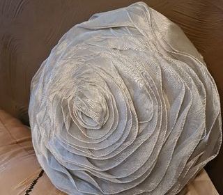 Vends coussin dehoussable couleur gris. Forme rose.