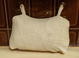 Vends oreiller de bain. 36 cm de long sur 25 cm . Description Se fixe sur la baignoire grà ¢ce aux ventouses Moelleux avec sa housse en coton bio Déhoussable pour un nettoyage ultr