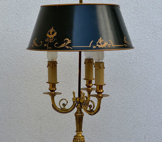 Très belle lampe bouillotte à trois feux,en bronze doré style empire, Son socle en forme de coupelle très richement ciselé.Cette Magnifique lampe bouillotte est entièrement fabriqu