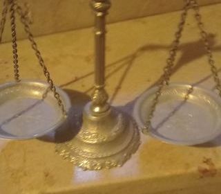petite balance décorative en métal argenté je sais pas trop en quoi exactement peut-être en étant je ne sais pas