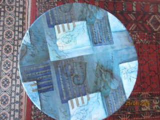 3 boites rondes qui s'encastrent (selon les principes des poupées russes) en carton dur glacé avec anges musiciens sur fonds bleus à l'intérieur et à l'extérieur , diamètres 32,30
