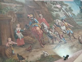 8.rolu de peinture sur toile murale scène romantique villageois décoration théâtre château maison de charme dimension 2,50 m et 3 m 70 rouler sur des rouleaux en très bon état