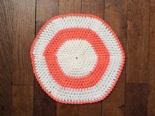 Napperon Rond Fait Main en 100% Laine Blanc et Saumon- Neuf * Napperon rond en laine fine blanche et saumon fait à la main- diamètre= 33cm env- neuf, jamais utilisé