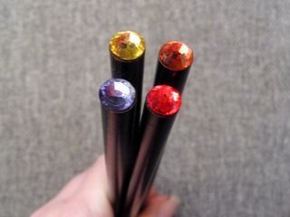 4 Crayons à Papier en Bois Noir avec Strass- Neuf- Swiitch * Lot de 4 crayons à papier en bois noir avec leur strass colorés au bout- neuf, jamais taillés- de la marque Sw