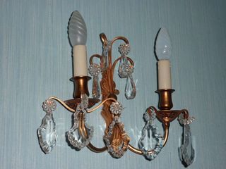 Belle Applique Murale 2 Branches en Bronze et Pampilles Cristal Équipée électricité Double Lumières Élégante et Raffinée Paiement Uniquement en Espèces Lors du RV Pour La