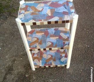 Très jolie meuble d'appoint, Aspect journeaux de voyage, pour n'importe quel endroit. Venir chercher.H.67 LG.40.PROF.25