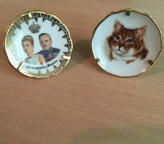 Petite assiette en porcelaine de limoge, avec support de Grace kelly et le prince Regnier. Y compris un chat à récupérer sur place prix pour chaque.