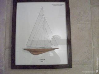 Tableau sous verre, avec coque en relief en bois poli. Déssiné par architecte. Venir chercher.