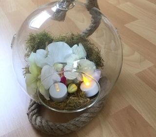vend une grande suspension luminaire en céramique ajourée bleue, luminaire pour cuisine, couloir....., décor grosse fleur jaune, style provençal, 35 cm de diamètre, lustre vendu av