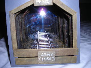 Book Nook " Mine : ligne fermée " (avec éclairage inclus avec pile 9 volts). Avec effet profondeur (miroir). Echelle 1/35e. Déco originale à insérer entre les livres d'une bibl