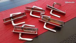 Vends 5 paires de poignées de portes chrome 22 x 40 - entraxe fixation 19.5 cm. Etat neuf - pour intérieur 6€ la paire Les 5 paires : 25€