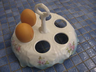 plateau de service pour les oeufs en porcelaine/ objet des années 40/50 en porcelaine diamètre 22 cm/H totale 15,5 cm