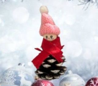 Chat en pomme de pin avec bonnet rose clair : s'accroche dans le sapin. D'autres modèles et décorations sur mon profil. 3 décorations à 2 € achetées = 5 € le lot