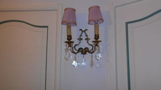 Très belle applique murale ,avec 2 feux ,en bronze et pampilles en véritable cristal .